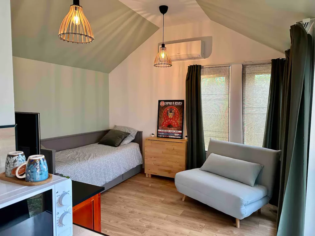 Japan House Imprégnez-vous de sérénité dans un studio à ossature bois, inspiré par l'esprit japonais, niché sous un chêne.